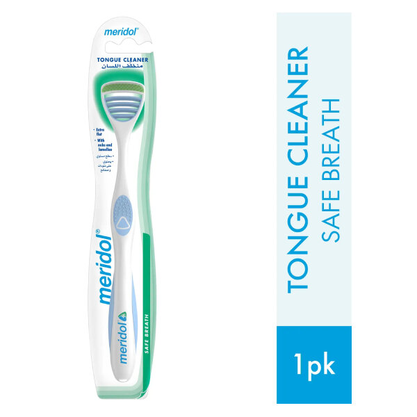 ميريدول منظف اللسان ينظف اللسان بشكل فعال عن طريق إزالة الطبقة البكتيرية الموجودة على اللسان.